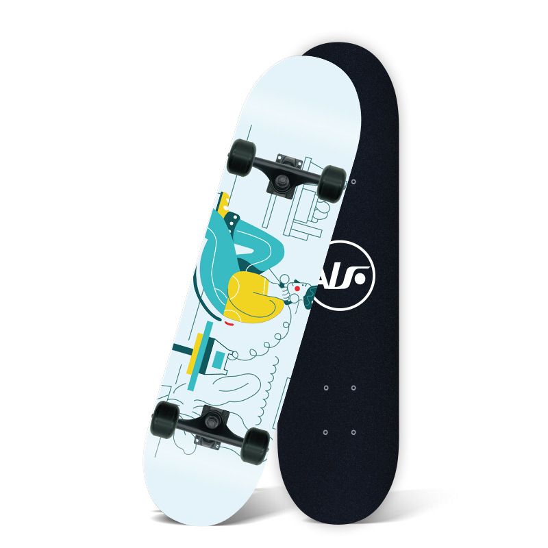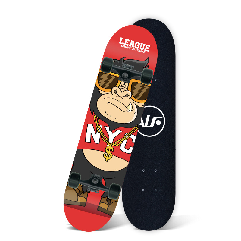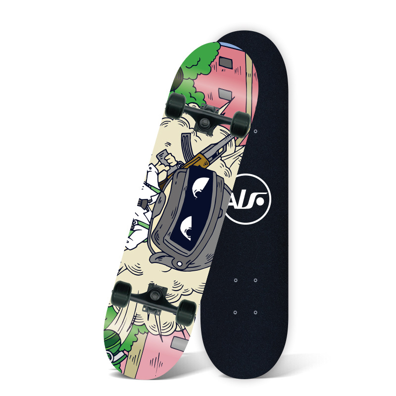 Skateboard Doppio Monopattino Azione per Uomini e Donne Tavola per Principianti Acero Spazzolatura Strada Ora Testa Land Rush Quattro