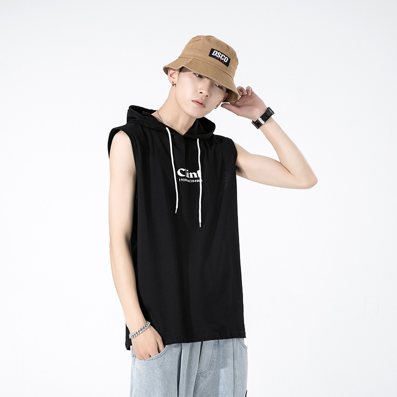 T-shirt canotta in puro cotone di marca trendy per l'estate 2023 senza maniche da uomo con top sportivo con cappuccio per uomo