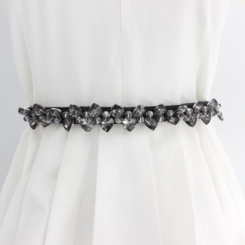 Cintura elastica a scatto per donna decorata con strass e cristalli per abiti, cintura sottile elastica versatile, cintura nera