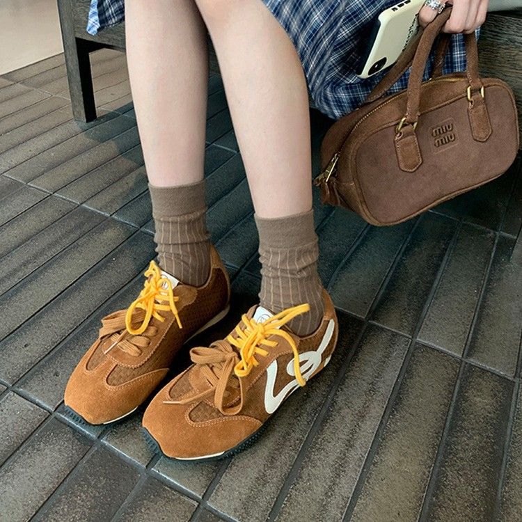 Sneakers casual testurizzate con lacci e punta tonda, versatili, con suola spessa, stile mandarino, autunno 2025, per donna