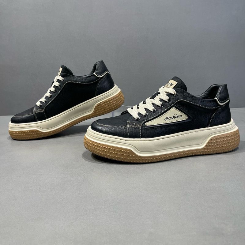 Sneakers da uomo in pelle per la primavera, scarpe sportive con suola spessa, alla moda e versatili, scarpe casual basse_voghion.com