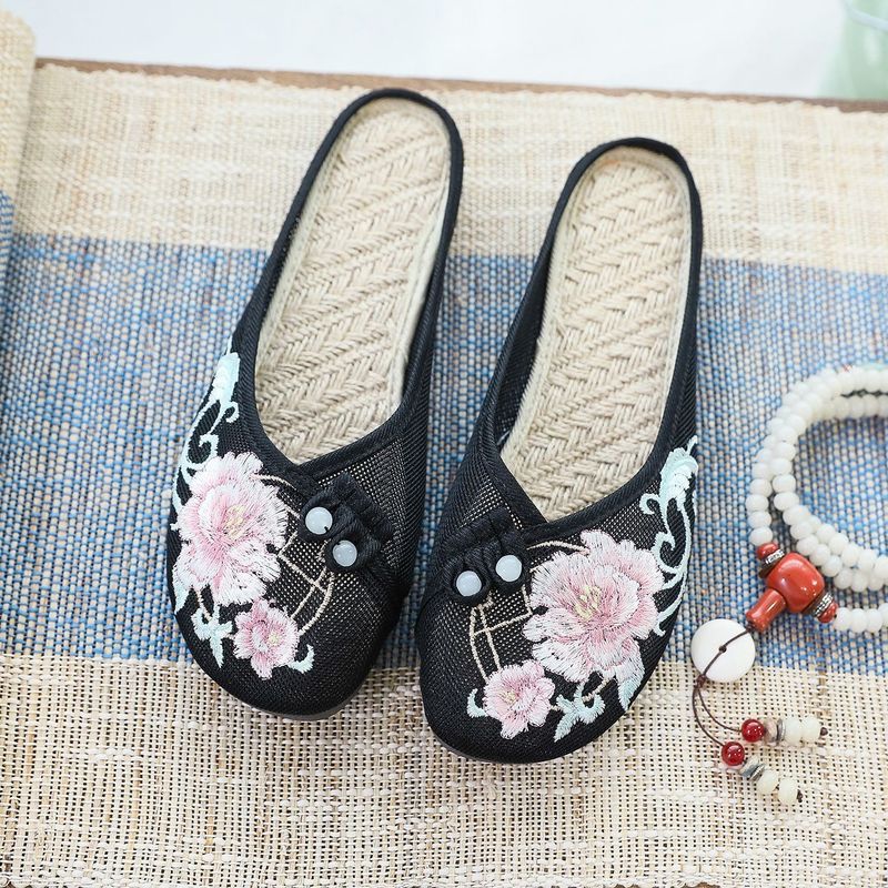 Mesh shoes, linen insoles, embroidered slippers, flat slippers, 2022 women's shoes, sandals
