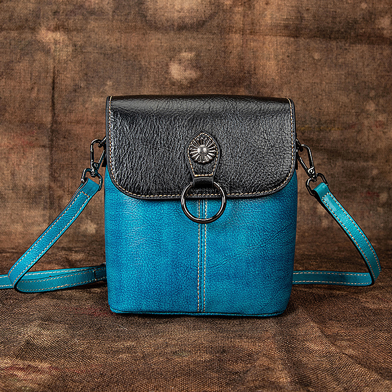 Handmade Colored Shoulder Bag for Women's Korean Fashion Trend Genuine Leather Women's Bag Top Layer Cowhide Women's Small Crossbody Bag