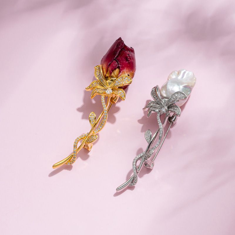 Spilla originale con rose retrò europee e americane, spilla di fiori secchi di alta qualità di nicchia