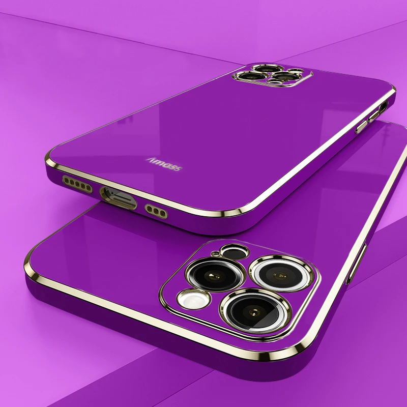Square Plating Border Phone Case For IPhone 15 14 11 12 13 14 Pro Max Mini Plus Solid Color Silicone Soft Protect Cover