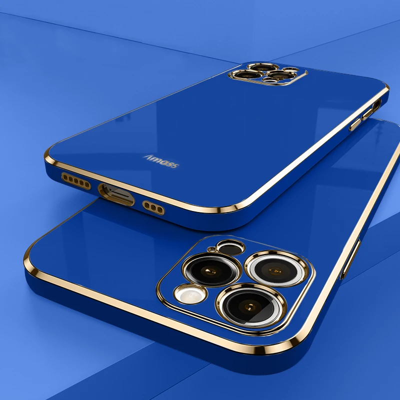 Custodia per telefono con bordo placcato quadrato per IPhone 15 11 12 13 14 Pro Max Mini Plus Custodia protettiva morbida in silicone tinta unita