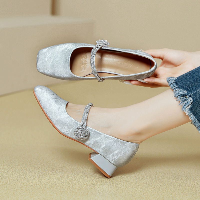 Mary Jane con punta quadrata e tacco grosso per donna con cinturino con fibbia magica, tacco alto 2025, nuova primavera autunno, stile francese, tacco basso