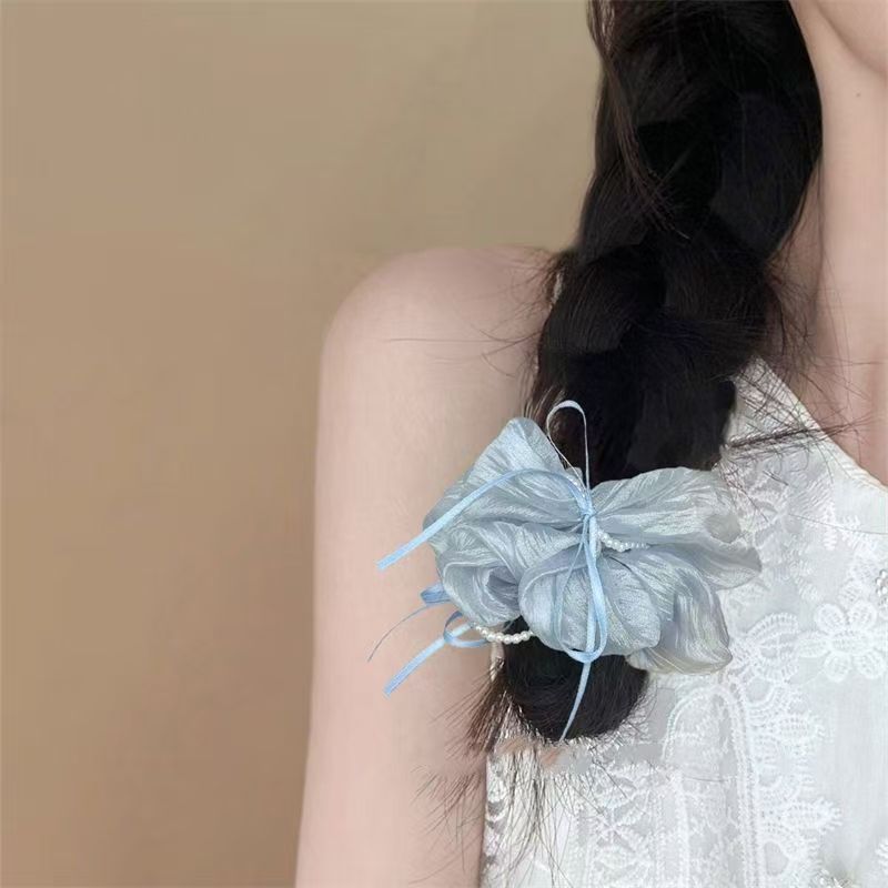 Quiet Starry Sky, Blue Butterfly, Pearl, Large Intestine Hairband, High Grade Satin Headband, Tie Ponytail, Coiled Hair Device for Women