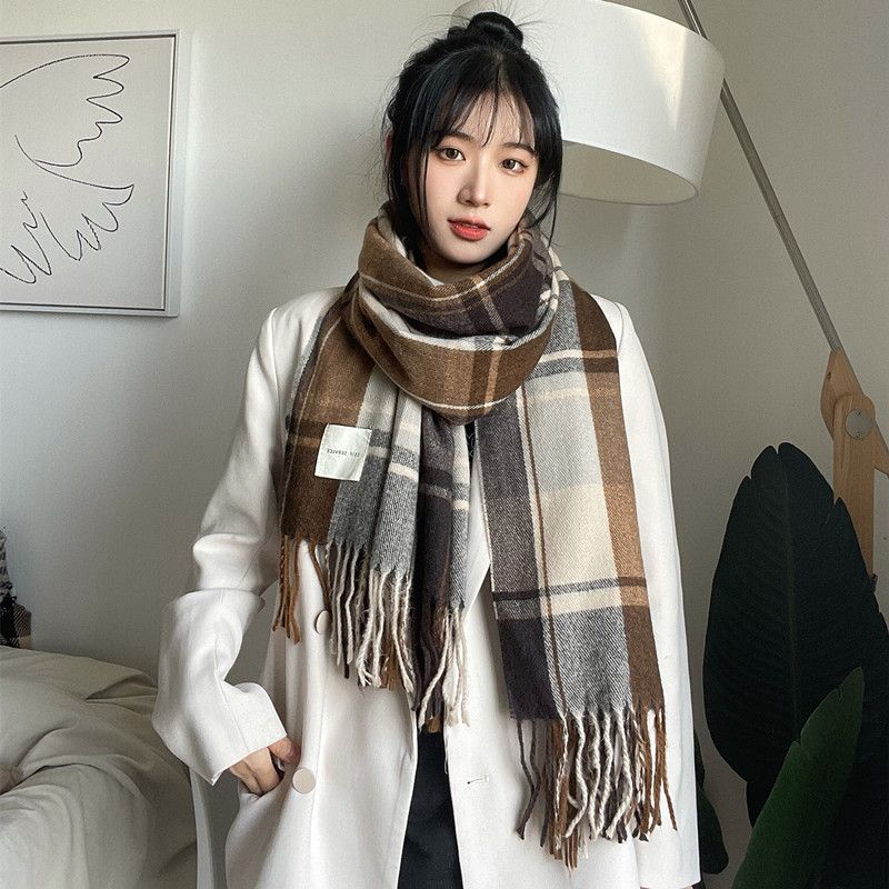 Korean style atmosphere plaid scarf for women in autumn and winter, thick and warm shawl for students, cute and high-end versatile scarf