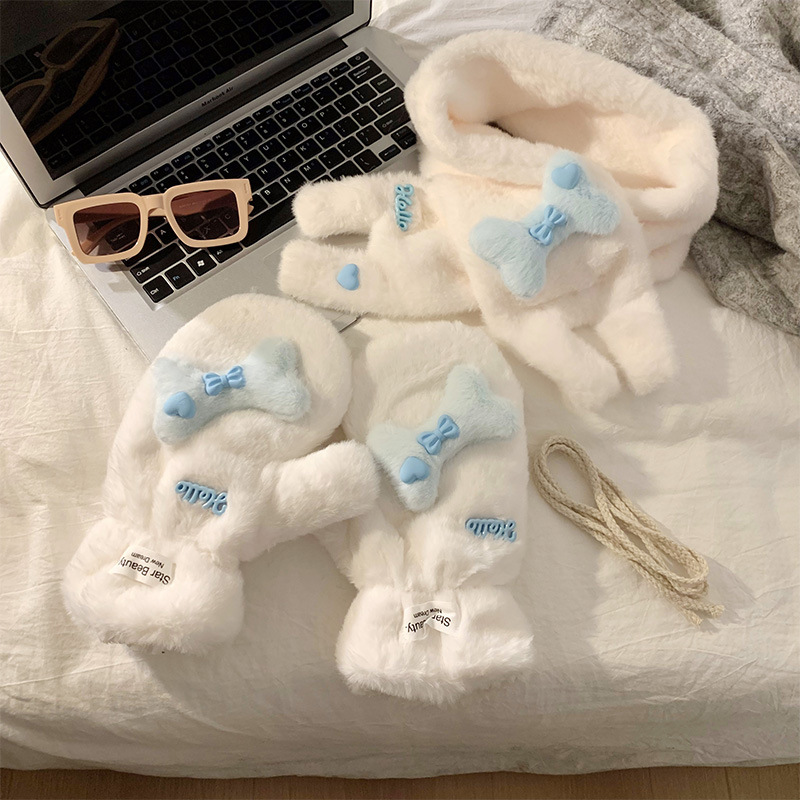Stile coreano carino caldo peluche ispessito inverno sci ciclismo antivento antifreddo cartone animato collo appeso a cinque dita