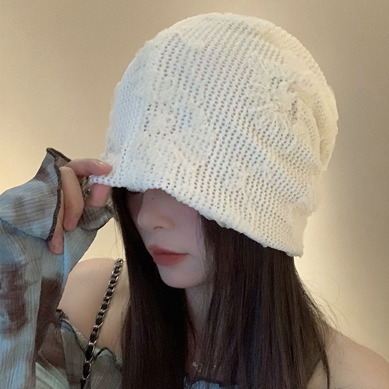 Coldness style loose flower pile hat for women, versatile spring and summer atmosphere, thin and breathable big head circumference, cold hat with toe cap