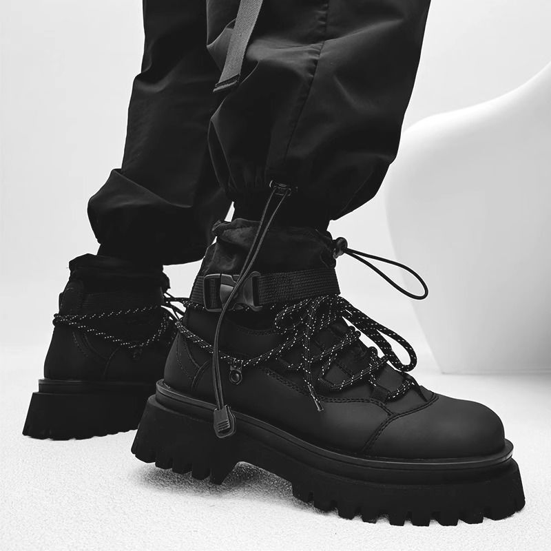 2024 Men's Leather Boots Thick Sole Height Increasing Commuter Work Martin Boots Men's Mid-Cut Versatile Casual Shoes
