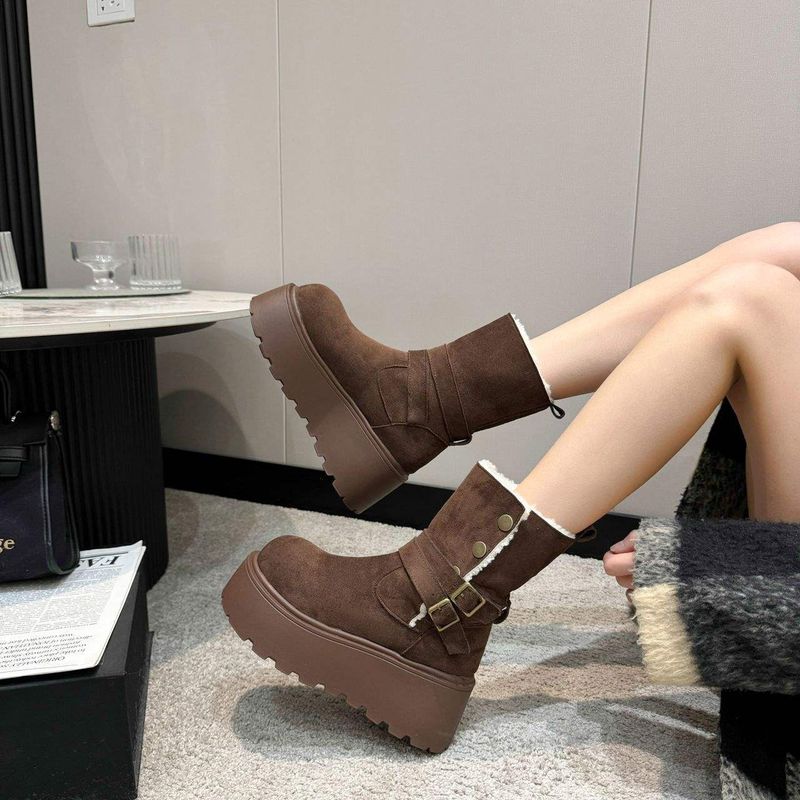 Stivali da neve da donna con suola spessa, autunno/inverno 2025, nuovi stivali da neve foderati in pelliccia, resistenti alla neve