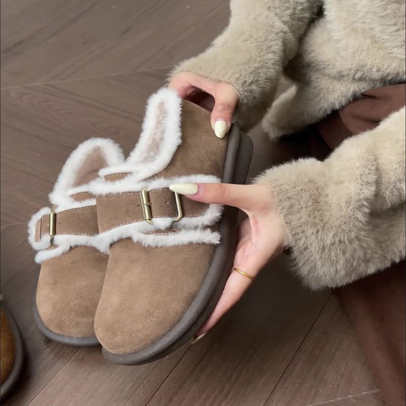 Warm Fleece-Lined Thick-Sole Cotton Boots Fur Buckle, Women's Snow Boots 2025 Fall/Winter New