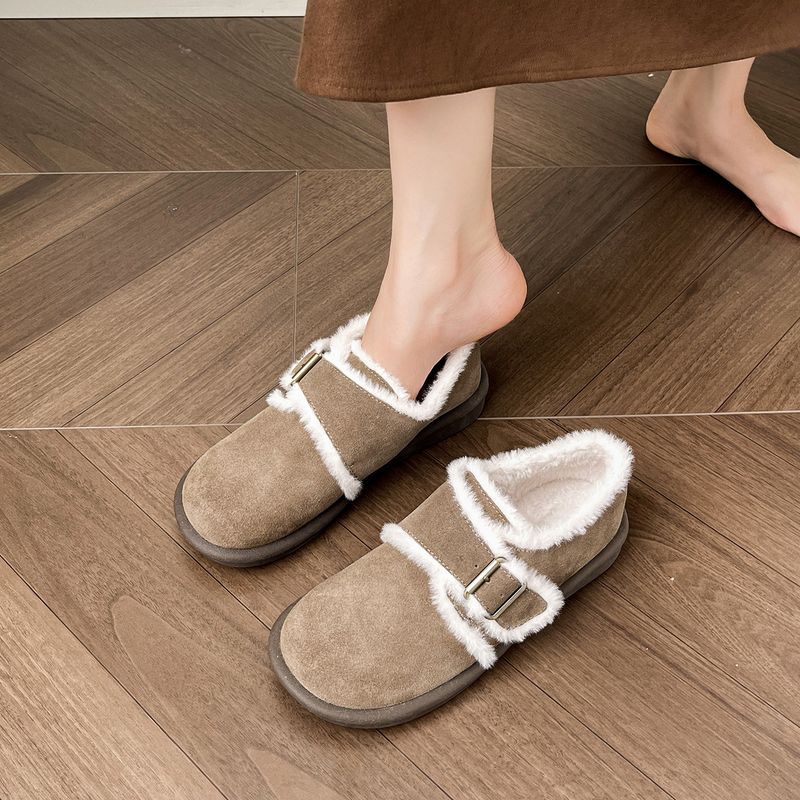Warm Fleece-Lined Thick-Sole Cotton Boots Fur Buckle, Women's Snow Boots 2025 Fall/Winter New