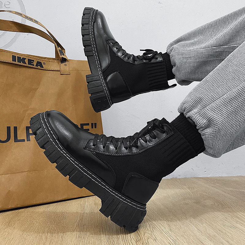 Stivali da neve da uomo Martin High Top in pelle con suola spessa Fly Knit 2025, autunno inverno, foderati in pile, spessi e caldi, altezza