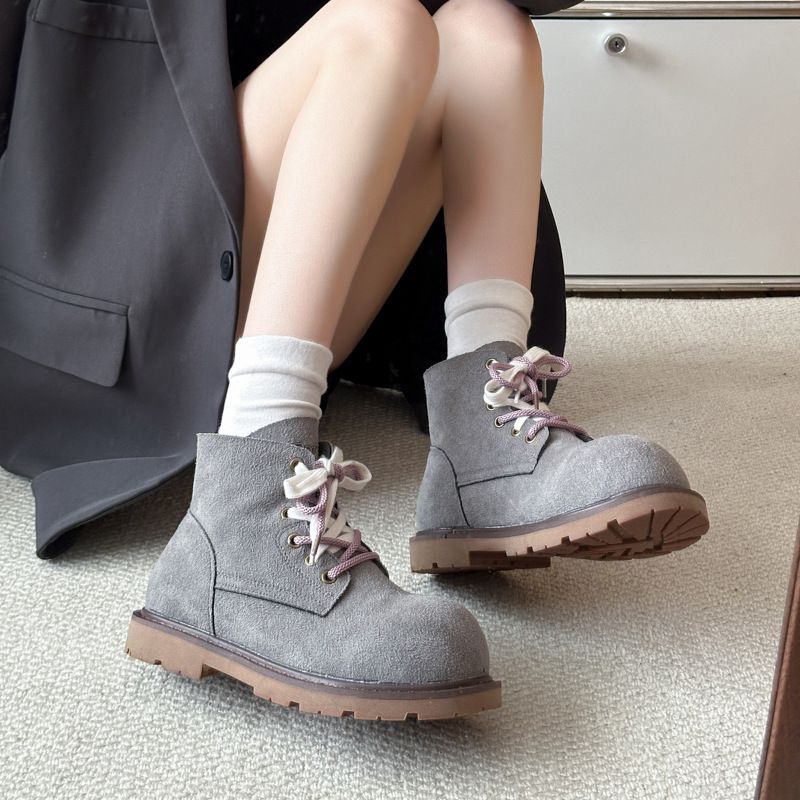 Fashionable Martin Boots 2025 Fall/Winter New Short Suede Lace-Up Flat-Sole Women's Ankle Boots