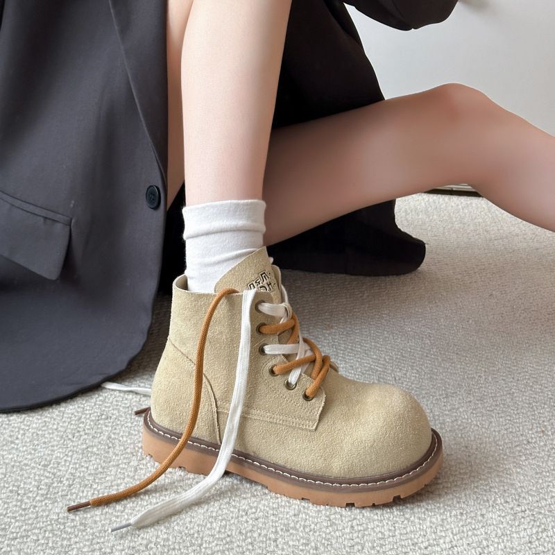 Fashionable Martin Boots 2025 Fall/Winter New Short Suede Lace-Up Flat-Sole Women's Ankle Boots