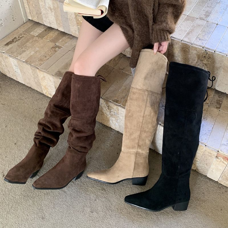 2025 New Fashion Over-the-Knee Boots for Women, Pointed Toe, Thick Heel, Stacked Long Boots for Autumn and Winter
