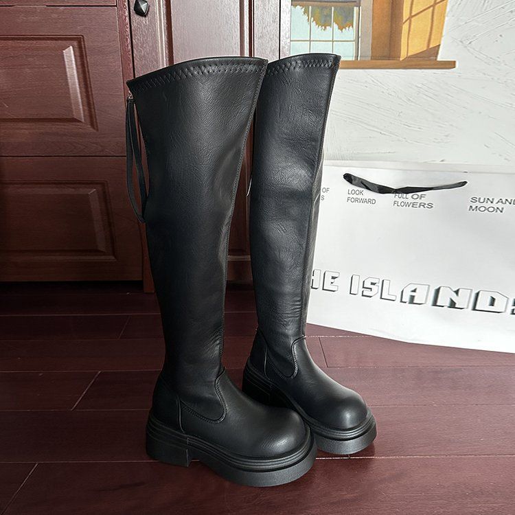 Brown Chunky-Heeled Over-the-Knee Boots 2025 Fall/Winter New Versatile Over-the-Knee Boots
