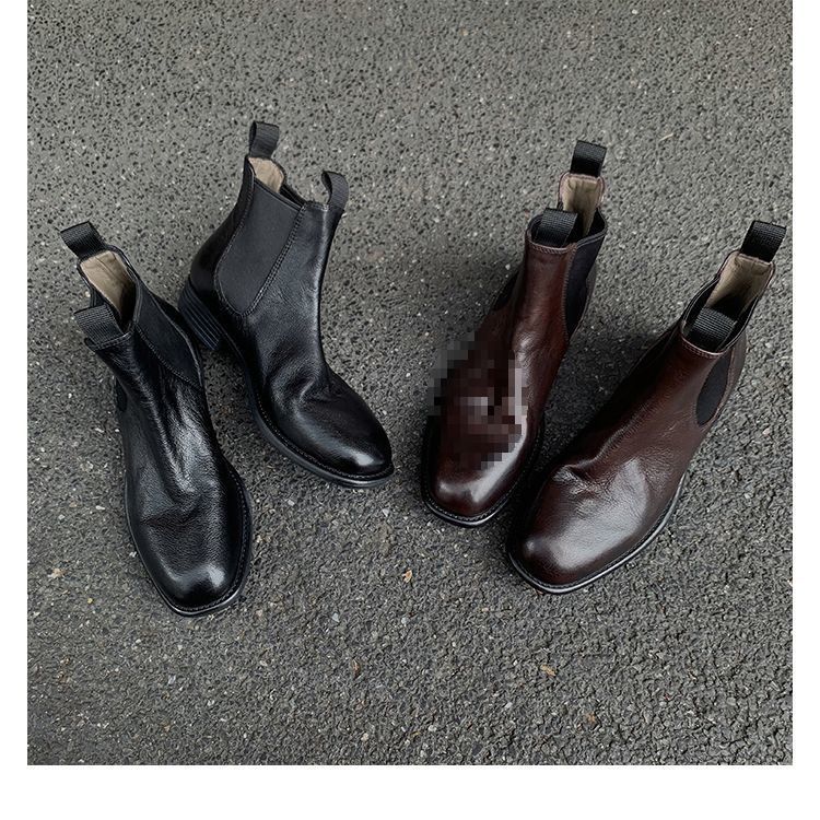Grape Mom Studiolee Wrinkled Fashion Versatile Round Toe Thick Sole Boots for Women Spring and Autumn
