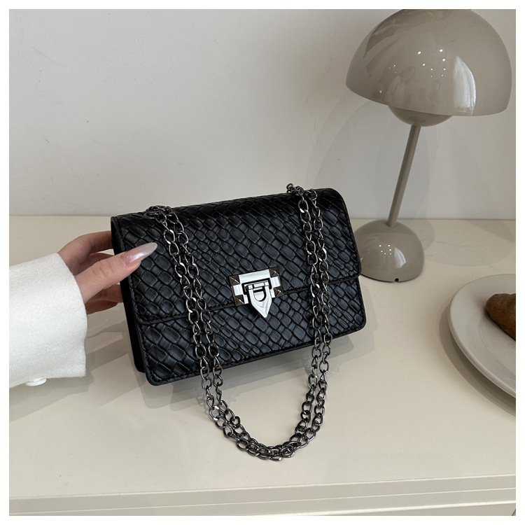 Borsa a tracolla da donna con motivo a pietra, piccola borsa quadrata con catena, borsa quadrata con fibbia e cerniera, stile street fashion