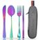 Stoviglie da esterno, set di posate portatili da 4 pezzi, coltello, forchetta, cucchiaio, bacchette con scatola, posate da viaggio, borsa da campeggio, posate da campeggio
