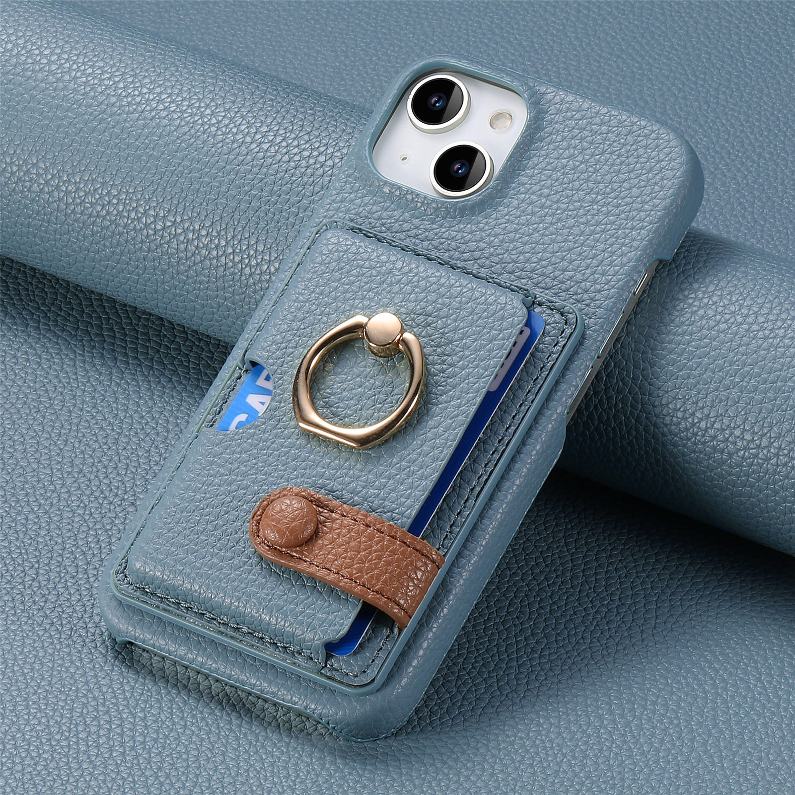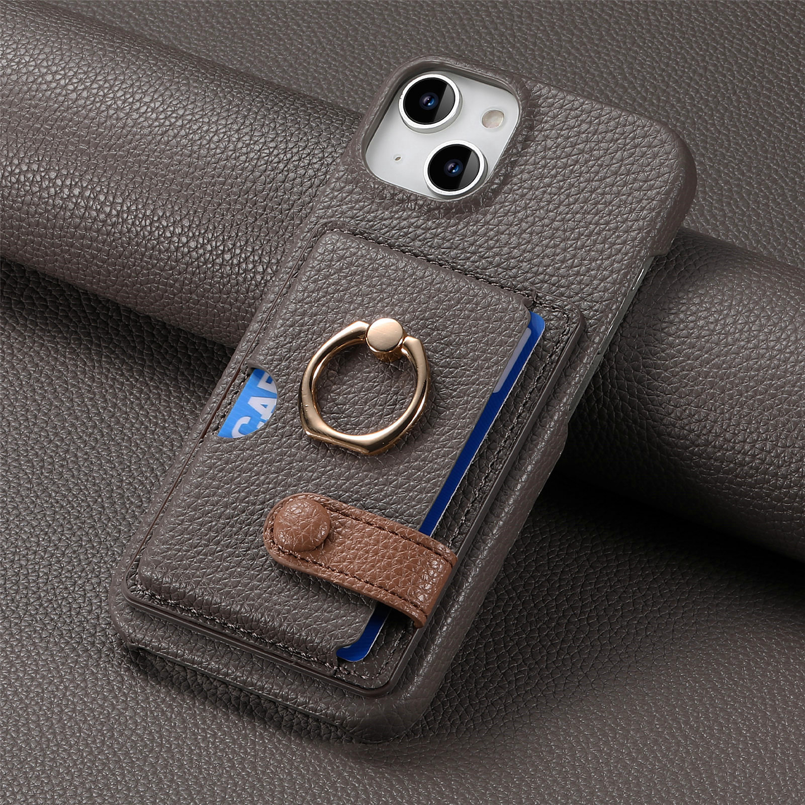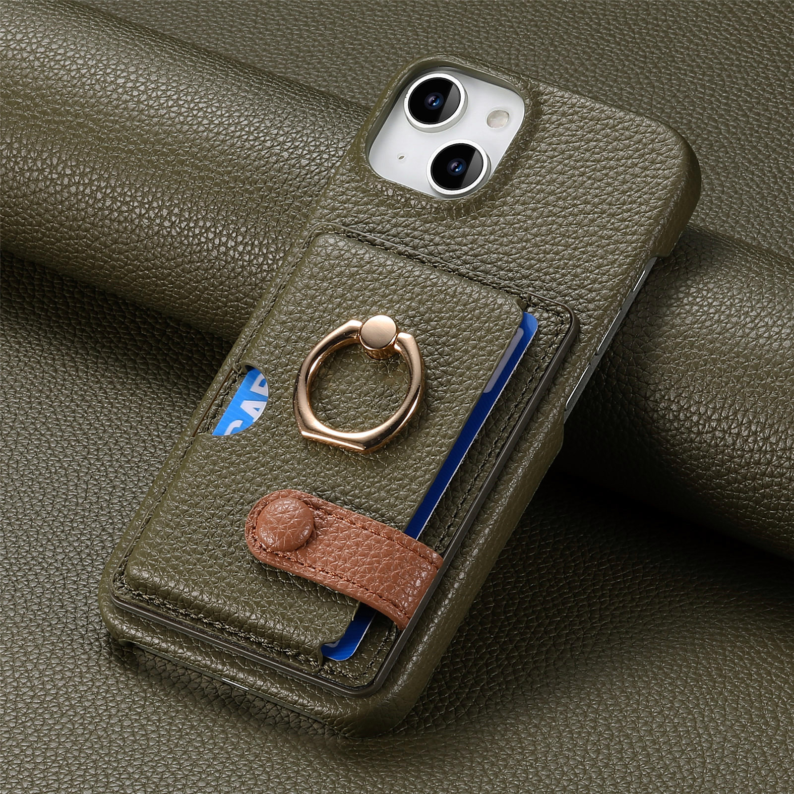 Suitable for Apple 15 Promax phone case, lychee pattern solid color oil edge card insert ring set, iPhone 14 protective case