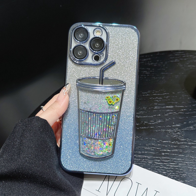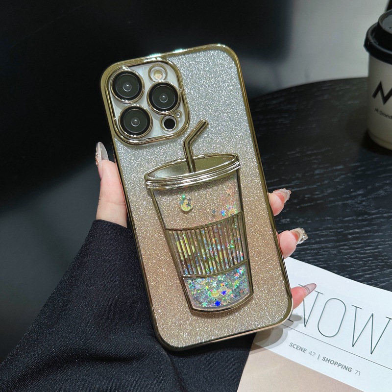 Adatto per la custodia del telefono iPhone 15 ProMax, tazza di sabbia glitterata elettrolitica Apple 14 con custodia protettiva in cartone