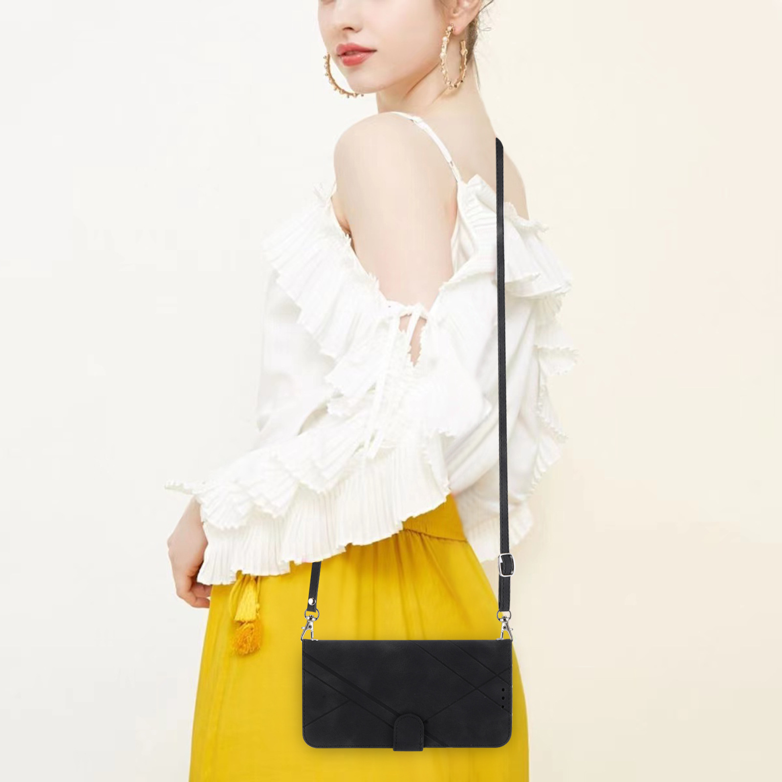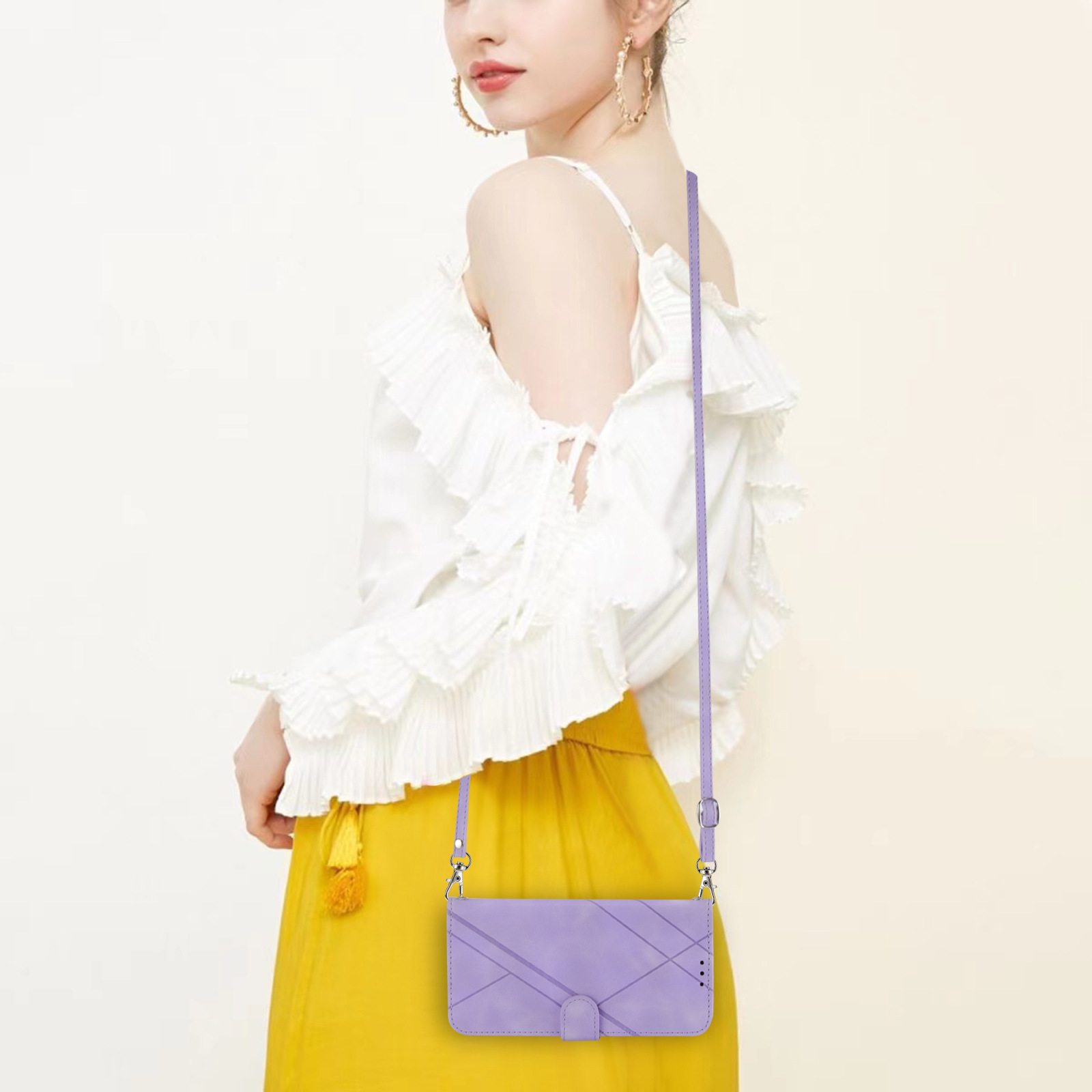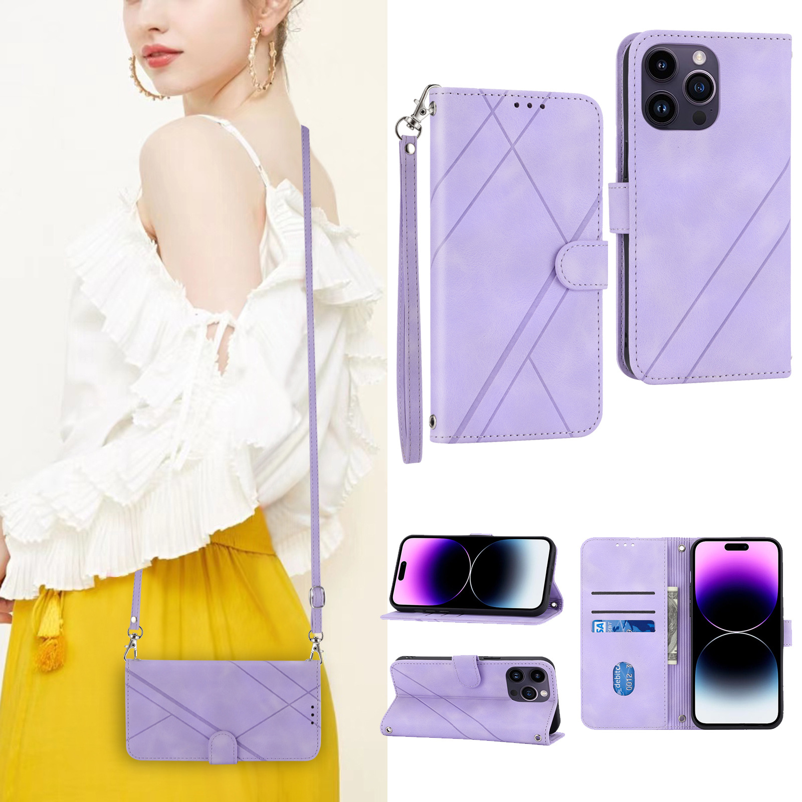 Suitable for iPhone 15 Pro Line Embossed Flip Cover Leather Case Crossbody Insert Card Skin Pattern Shell Apple 15 Ultra
