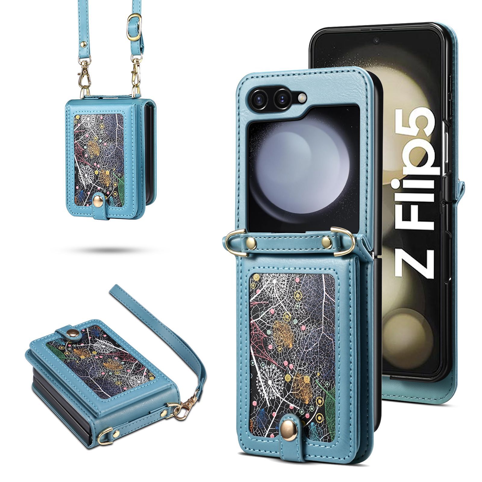 Adatto per Samsung ZFLIP5 Vast Interstellar Leather Pattern Card Insert zflip4 Custodia per telefono pieghevole con cinturino diagonale