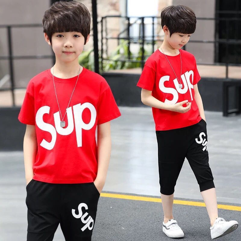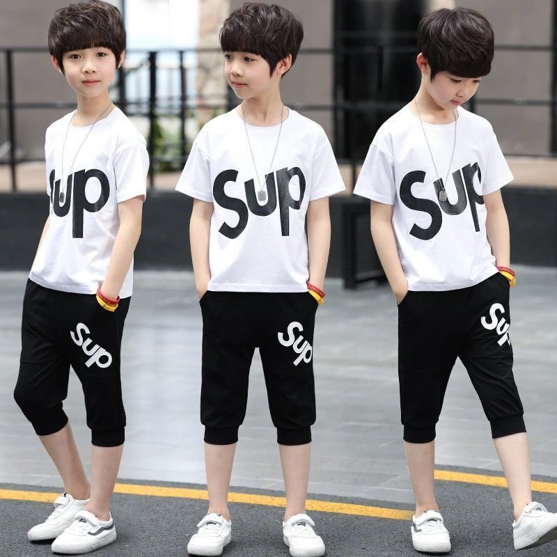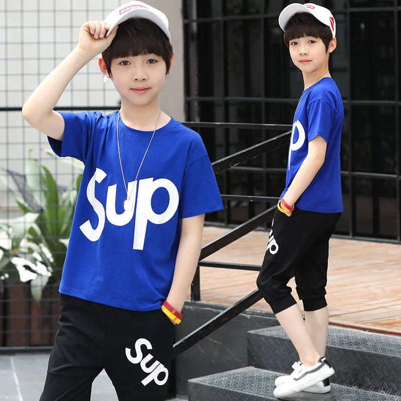 Children's Summer Set 2023 New Boys' Clothes Cotton Short sleeved T-shirt Baby Top Medium and Big Children's Two Piece Set