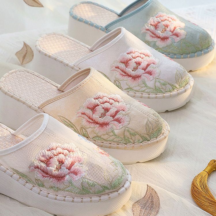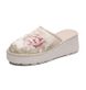 Thick sole slippers with sloping heels, fashionable embroidered bun and half support fabric, mesh embroidered shoes, sandals, and slippers for women