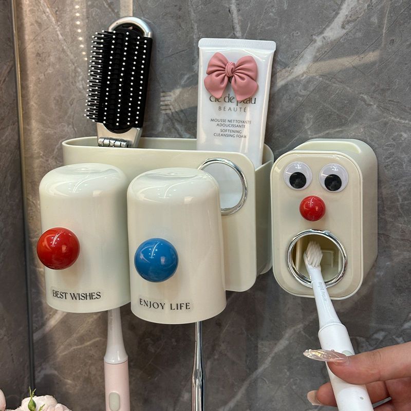 【Unshipped Instant Refund】Toothbrush Holder Brushing Cup Mouthwash Wall-Mounted Bathroom No-Drill Wall Hanging Internet Celebrity Storage Rack Tooth Cylinder Set