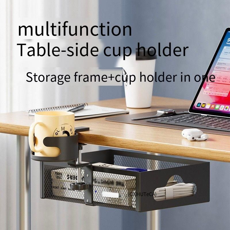 No-Drill Cable Organizer Dormitory Essentials Carbon Steel Storage Rack Office Desk Organizer Cup Holder Snack Drawer Under Desk