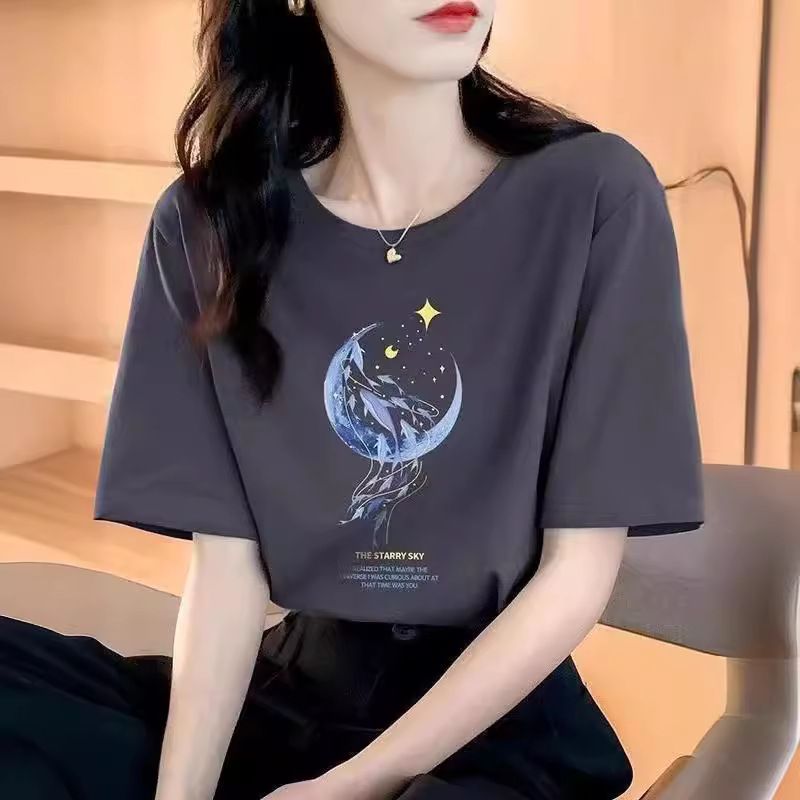 T-shirt a maniche corte in cotone largo per l'estate da donna, nuovo top bello ed elegante, senso del design di nicchia, popolare