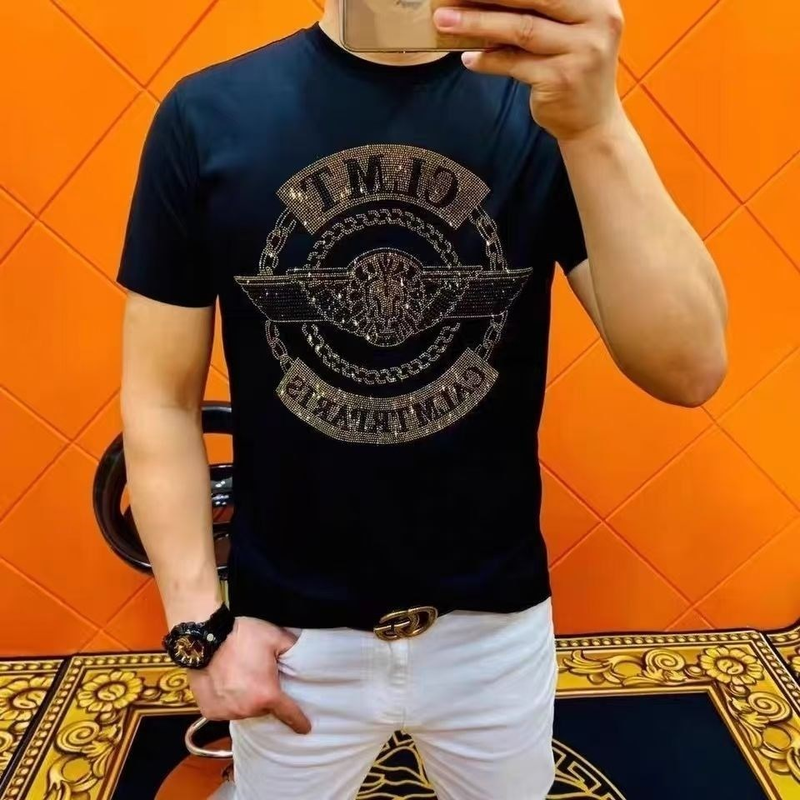 Men's trendy brand short sleeved 2022 summer pure cotton hot diamond half sleeved personalized round neck slim fit short sleeved T-shirt for men