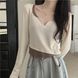 T-shirt a maniche lunghe in due pezzi con cuciture color block da donna autunno e inverno 2024, nuova ragazza piccante, vestibilità slim