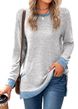 T-shirt casual allentata da donna con scollo tondo e tasca abbinata a maniche lunghe