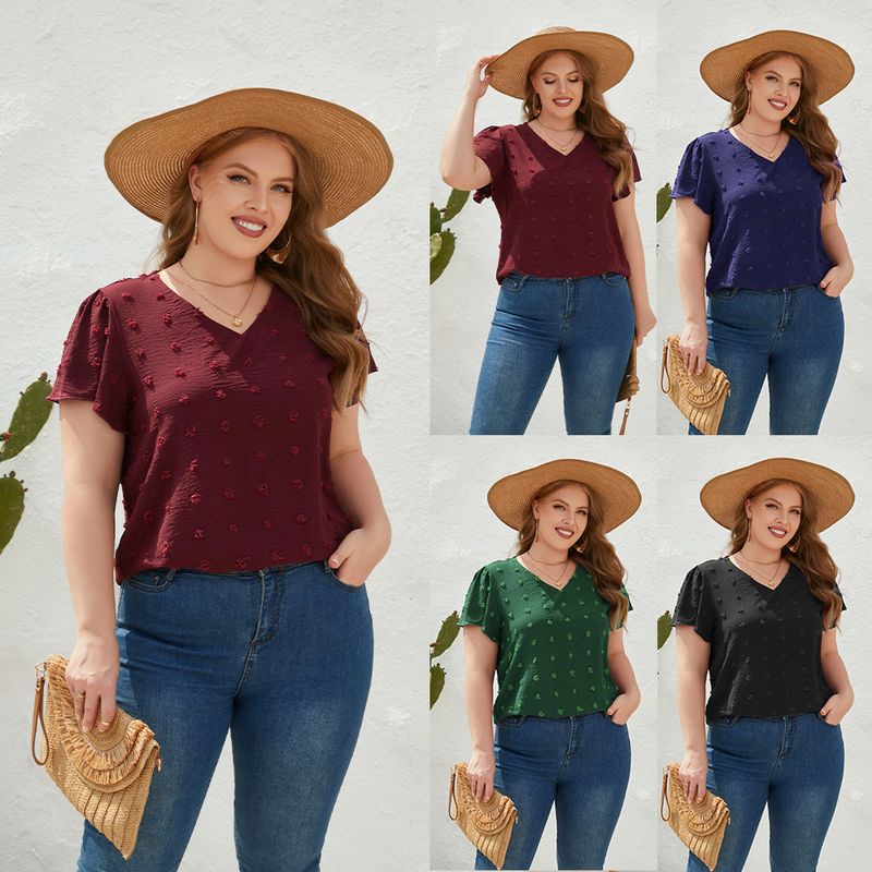 T-shirt casual Primavera/Estate Large Top da pendolarismo a maniche corte con scollo a V da donna