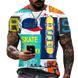 T-shirt da uomo Clover con stampa 3D di carte da gioco, alla moda, casual, con lettere inglesi, a maniche corte