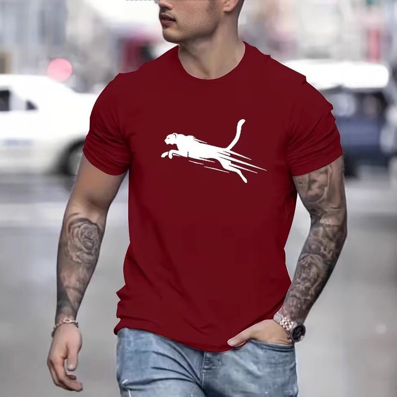 T-shirt girocollo a maniche corte, versatile e casual da uomo, con stampa 3D di ghepardo, stile High Street