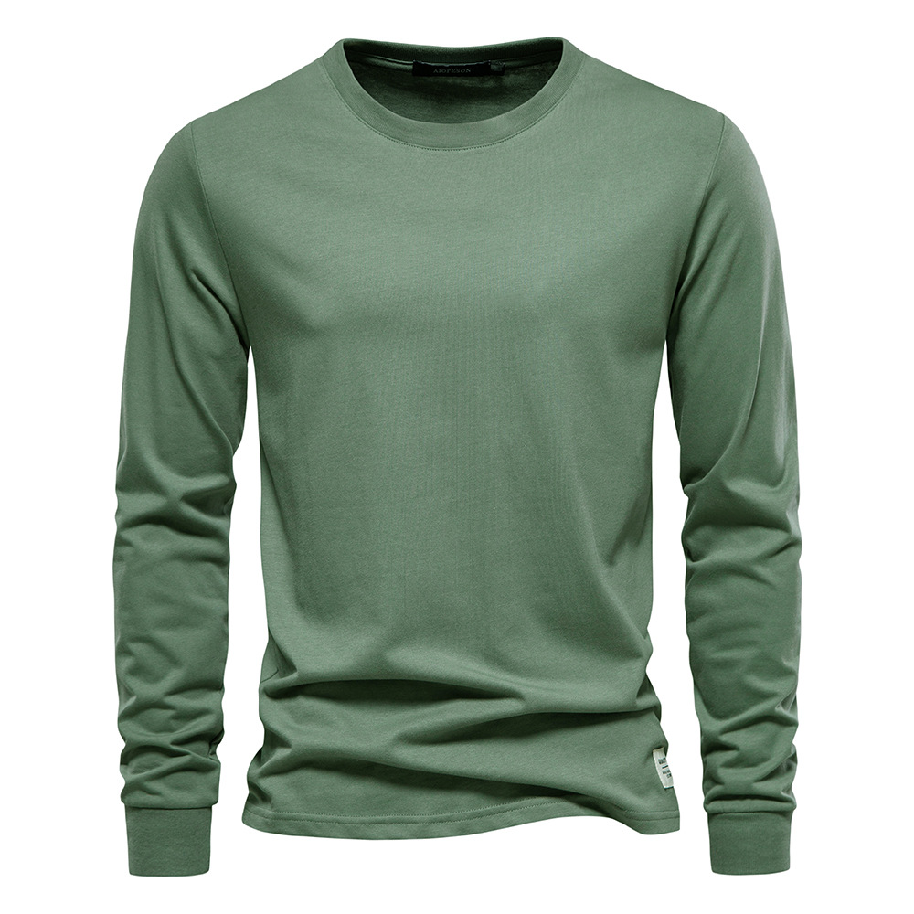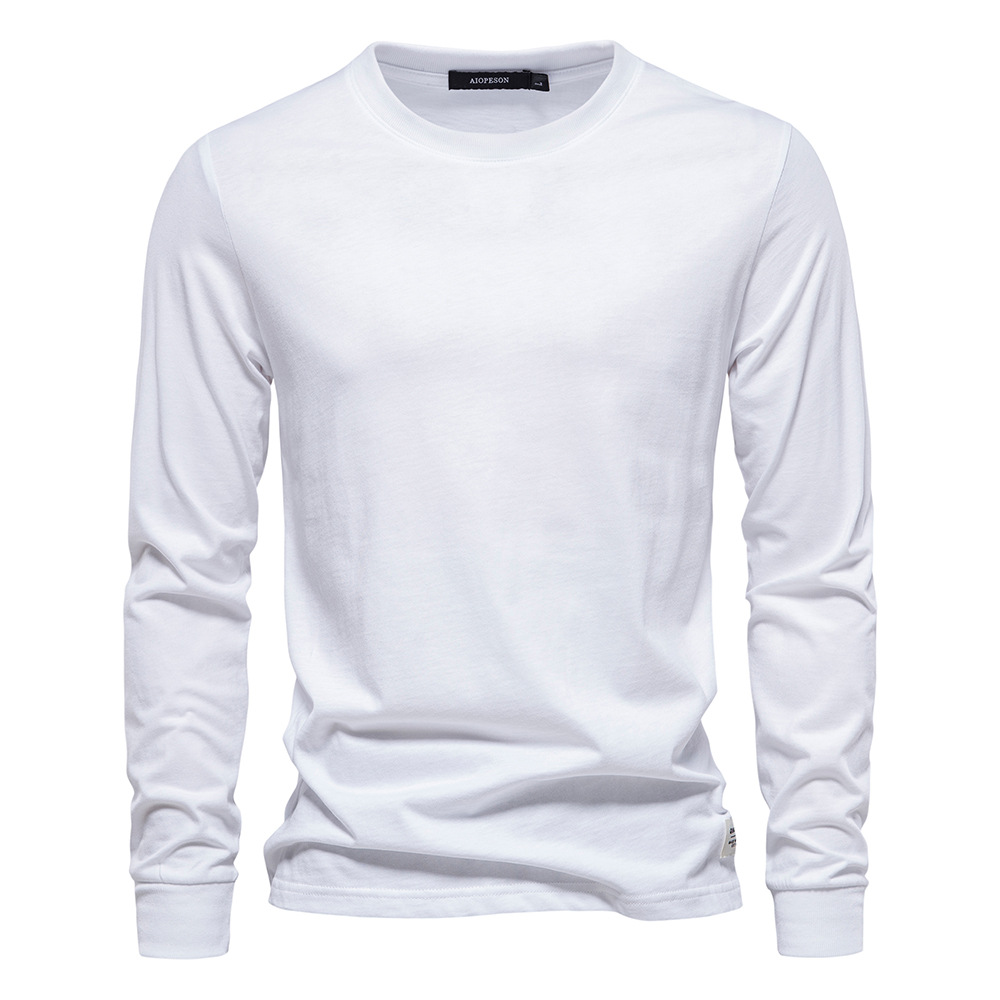 T-shirt in puro cotone con strato interno da uomo a maniche lunghe in tinta unita a maniche lunghe alla moda autunno nuovo