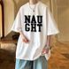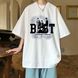Pure cotton short sleeved men's seasonal letter print five and a half sleeves casual loose Hong Kong style personalized trendy T-shirt