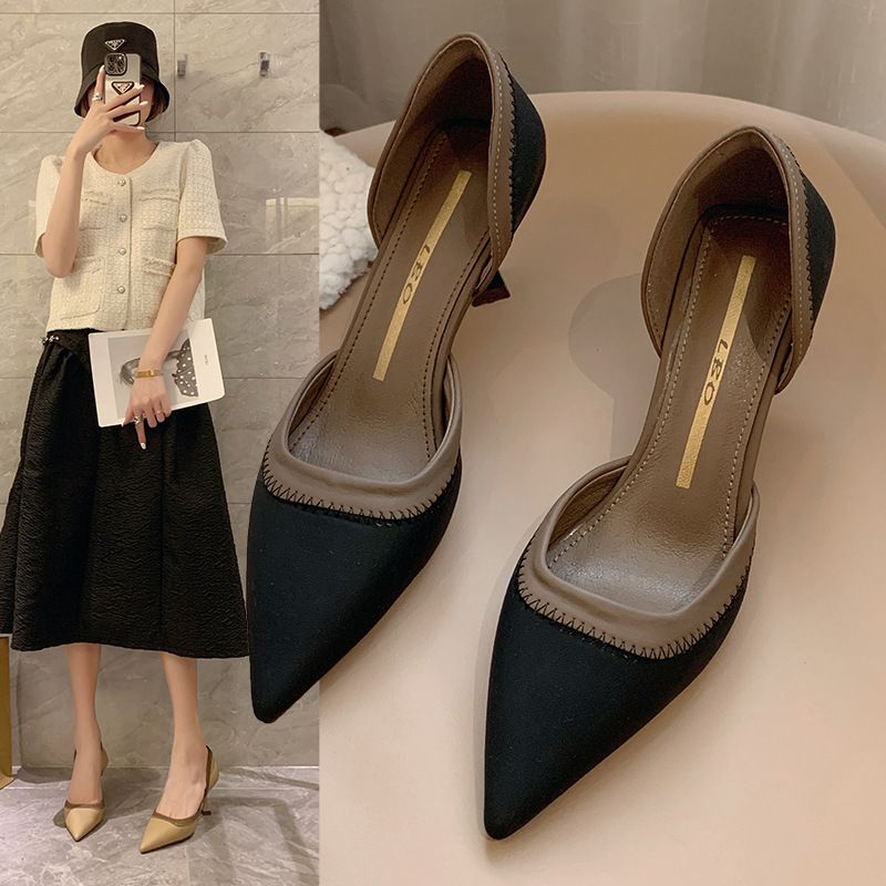 Tacchi alti 2024 primavera nuovo retrò piccole scarpe in pelle abbinate colore scarpe singole a punta sottili tacco cavo moda donna_voghion.com