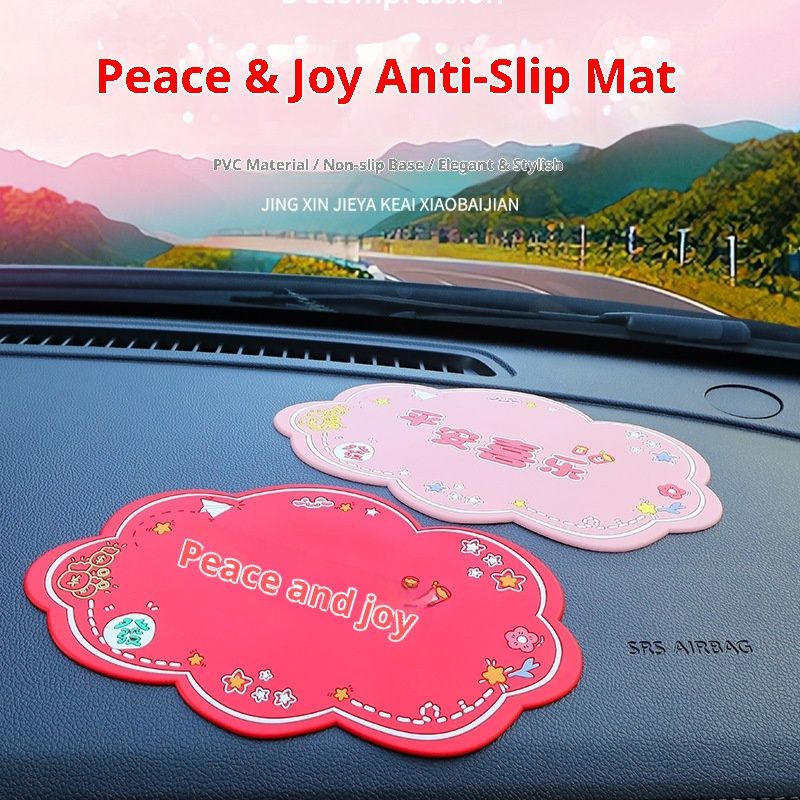 Tappetino organizer per cruscotto auto, decorazione per interni antiscivolo, resistente alle alte temperature, in PVC, motivo: cartone animato, pace e gioia