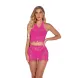 Women's Transparent Sexy Lingerie Set of 2 Items, One Tone Pea Top, Mesh Panties, Sexy Nightwear, Neck Strap Lingerie, Aperture Mesh