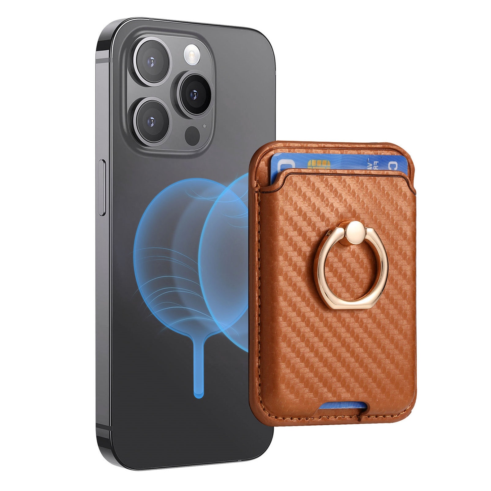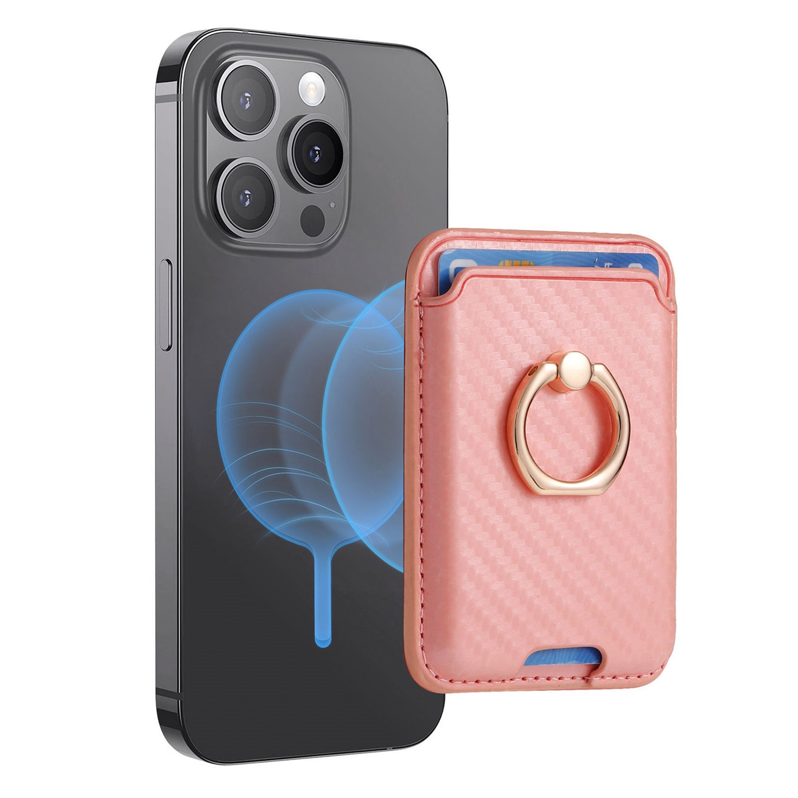 TechGlobe compatibile con 16 porta carte magnetiche in pelle con texture in fibra di carbonio, clip per portafoglio da 14p, 15