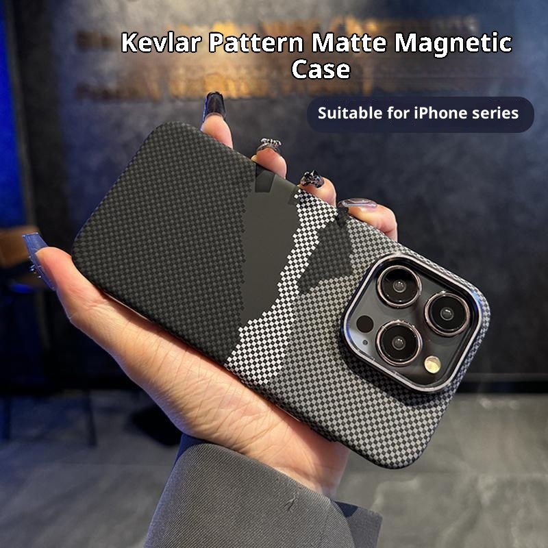 Custodia per telefono TechGlobe compatibile con iPhone 16 Pro Max, magnetica, in fibra di carbonio e Kevlar, copertura completa, antiurto, 15