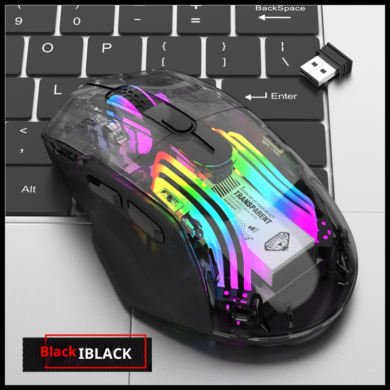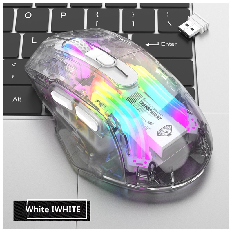 Techglobe Imperial Leopard Q19 Mouse da gioco trasparente con illuminazione RGB per laptop e desktop, con ricarica Bluetooth wireless a tre modalità